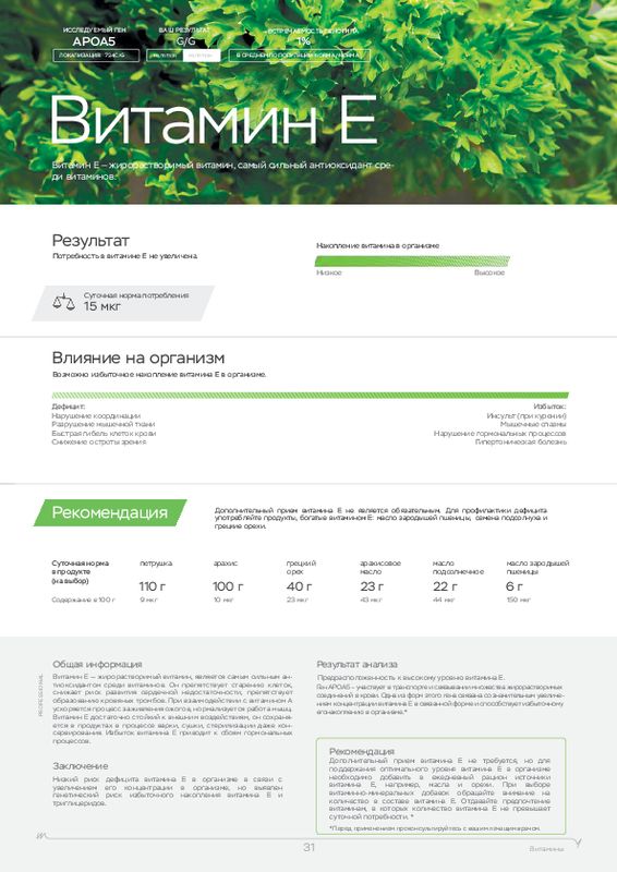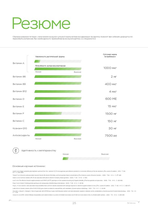 - Метаболизм витаминов и потребность (A, B6, B9, B12, C, D, E).