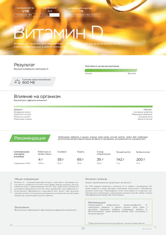 ДНК анализ показывает, каких питательных элементов не хватает вашей коже и вашим волосам. Эти вещества могут вырабатываться в малых количествах в организме, и их необходимо восполнять косметическими средствами и продуктами питания. У каждого человека этот набор веществ индивидуален, поэтому для получения максимального эффекта от косметики и косметологических процедур мы рекомендуем пройти наш генетический тест для красоты в Нерехте.