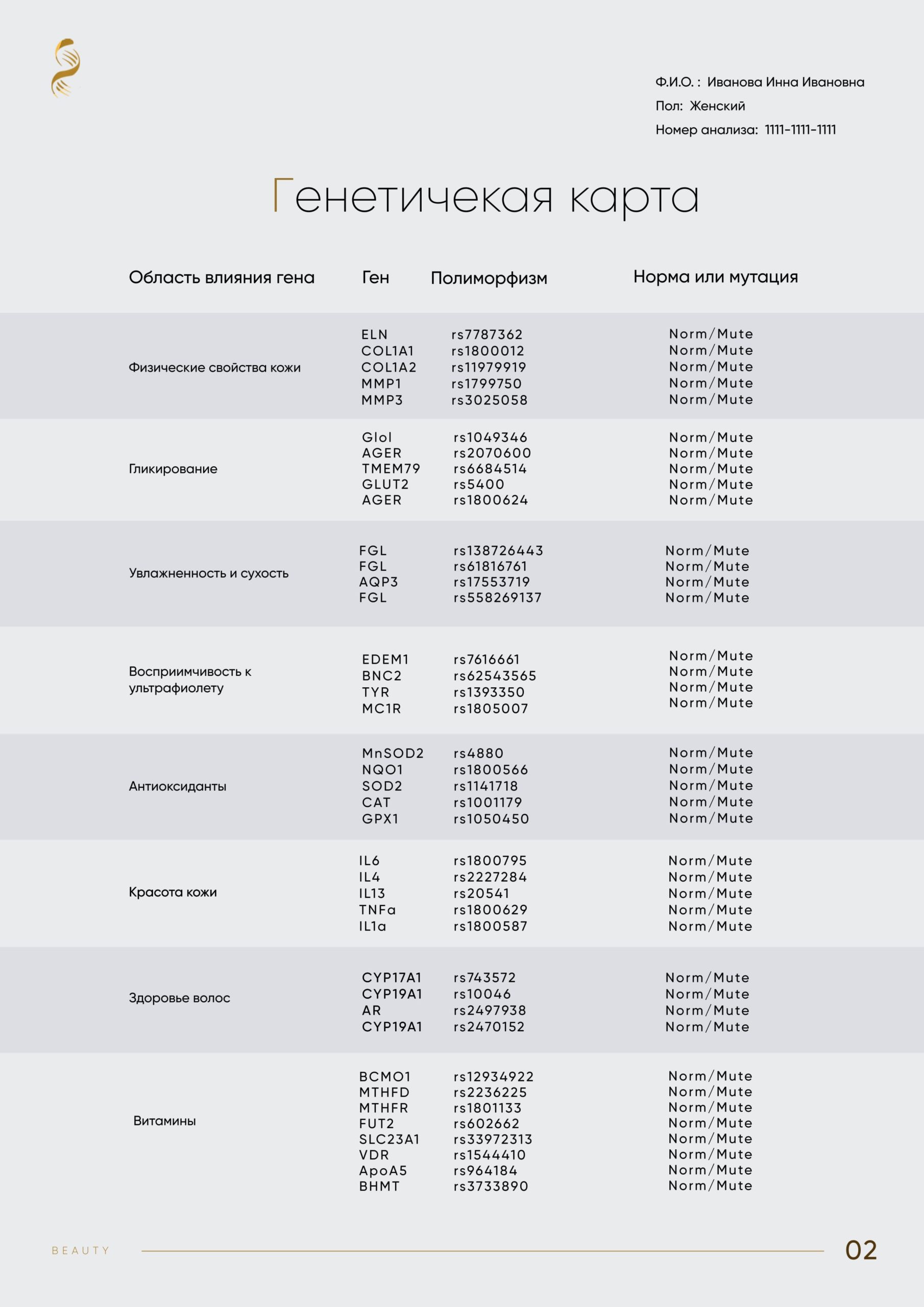 Пример отчета DNABeauty | Пример отчета Wellness |